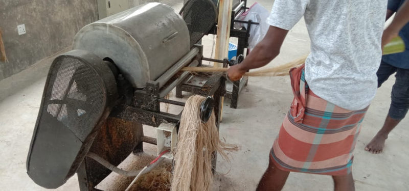 Purely mechanical fibre extraction — no toxic effluents, safe working conditions for artisans.